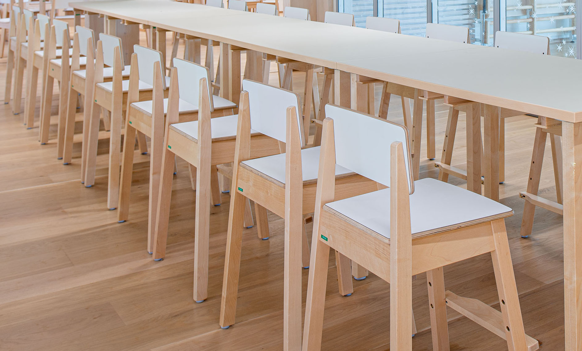 Tuusulassa sijaitseva päiväkoti Martta Wendelin on Arkkitehtuurin Finlandia 2023 -palkinnon voittaja! Puuntuoksuisen päiväkodin sisätilat on kalustettu rakennuksen teemaan ja arkkitehtuuriin sopivilla Woodi-päiväkotimalliston massiivipuukalusteilla.